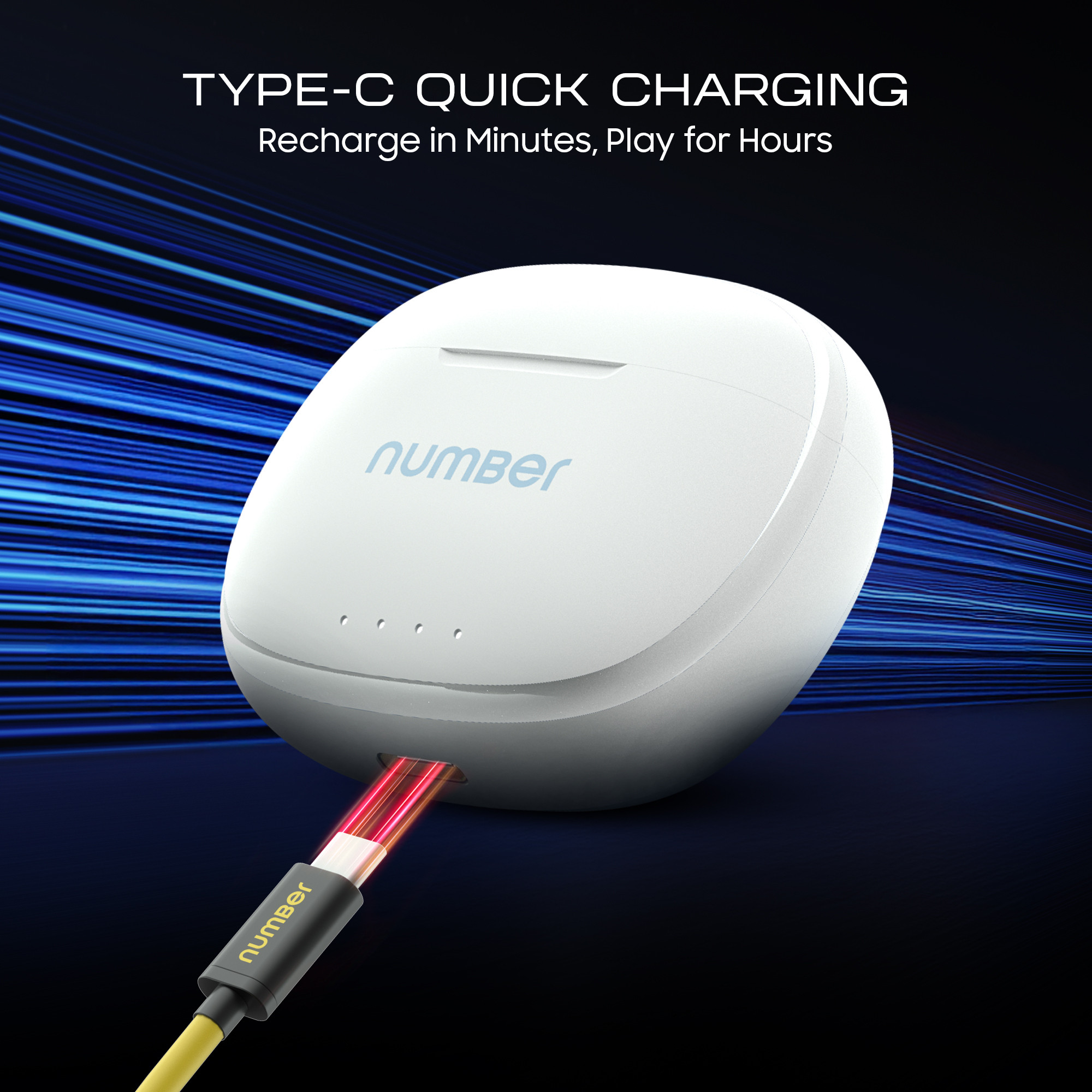 Number Navo Buds X1 w/ 50H Playtime, Dual Pairing, 13mm Speakers, ENC, 45ms Low Latency Bluetooth (White Sky, In the Ear)
