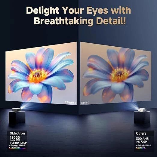 XElectron iProjector 1 Plus (18000 lm / 2 Speaker) with Dolby Sound, Auto Keystone, Netflix Support, 4K HDR Smart Android Projector (Black1)